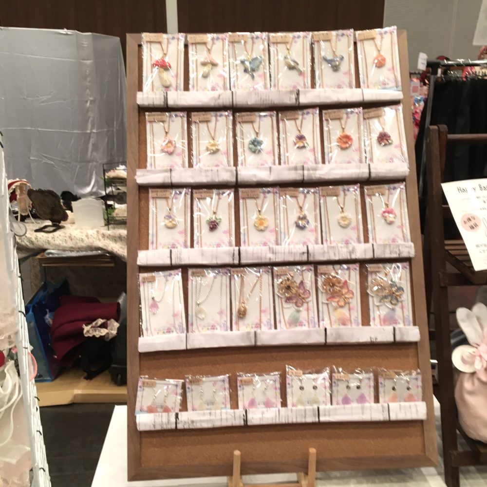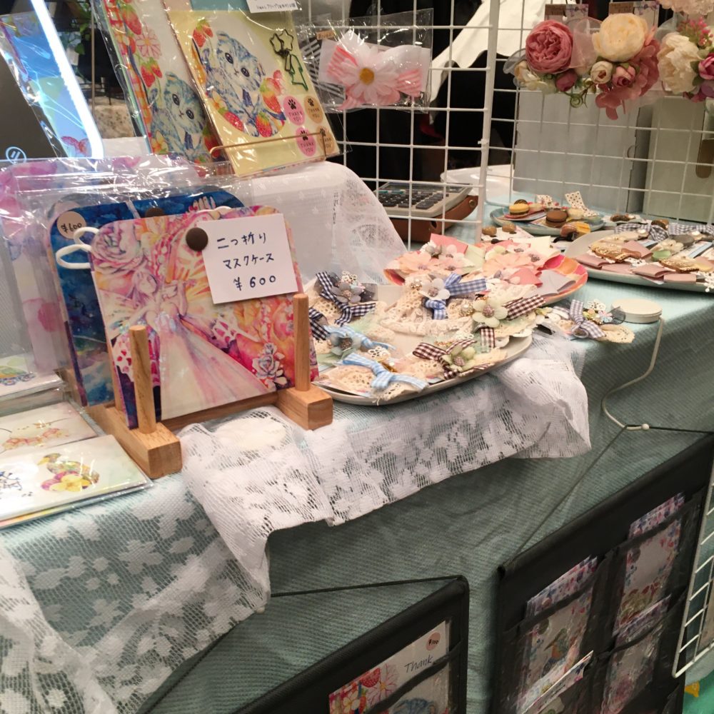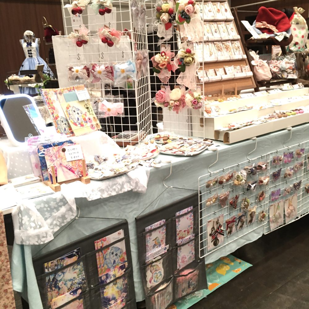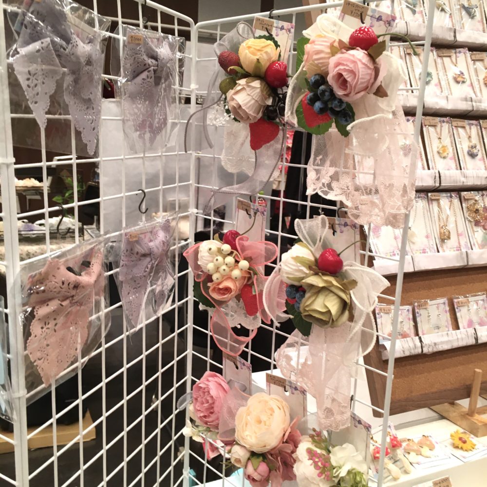 レースやフリルたっぷりの可愛くて素敵なお洋服、ゆめかわな雑貨やぬいぐるみ、イラスト、粘土作品、ゴシックな雰囲気のアクセサリー、どの作家さんもクオリティの高い力作揃いで、見て歩いているだけでうっとりします。ミニ原画もあったりで、絵好きな私は心くすぐられました。