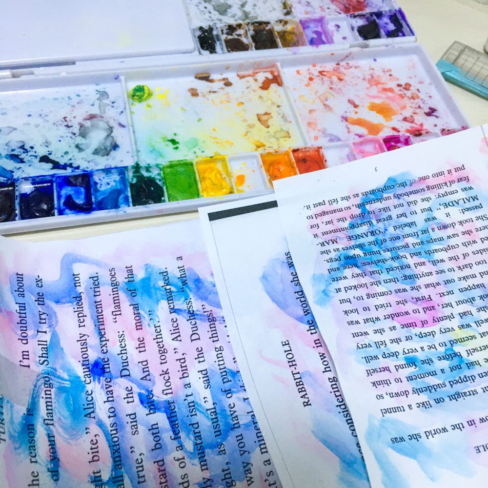 海外から輸入したマステや、透明水彩で着色した紙を、コラージュしています。