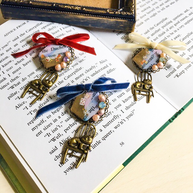 アリスモチーフのアクセサリーをいくつか制作していますが、今回はチェシャ猫をモチーフにしました。