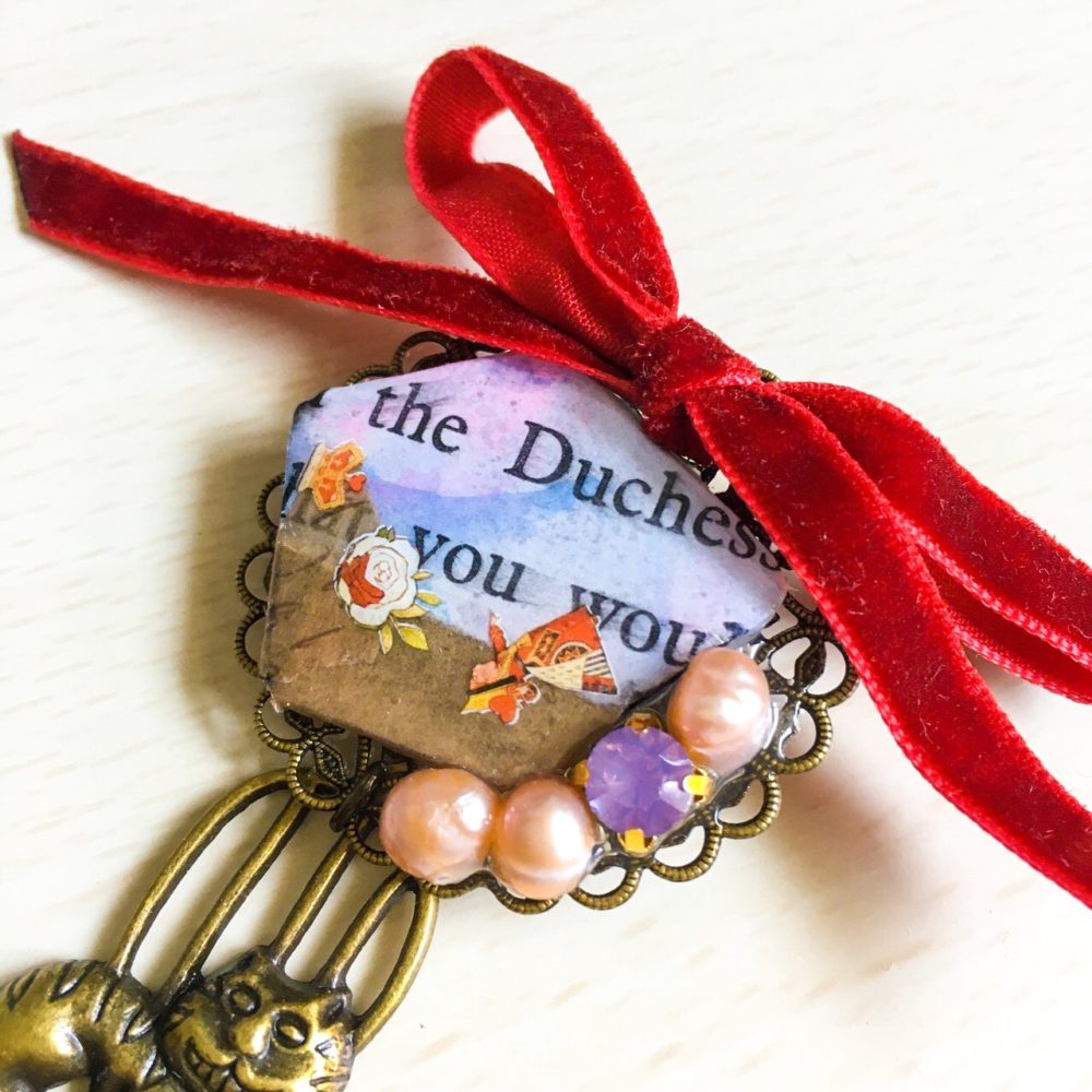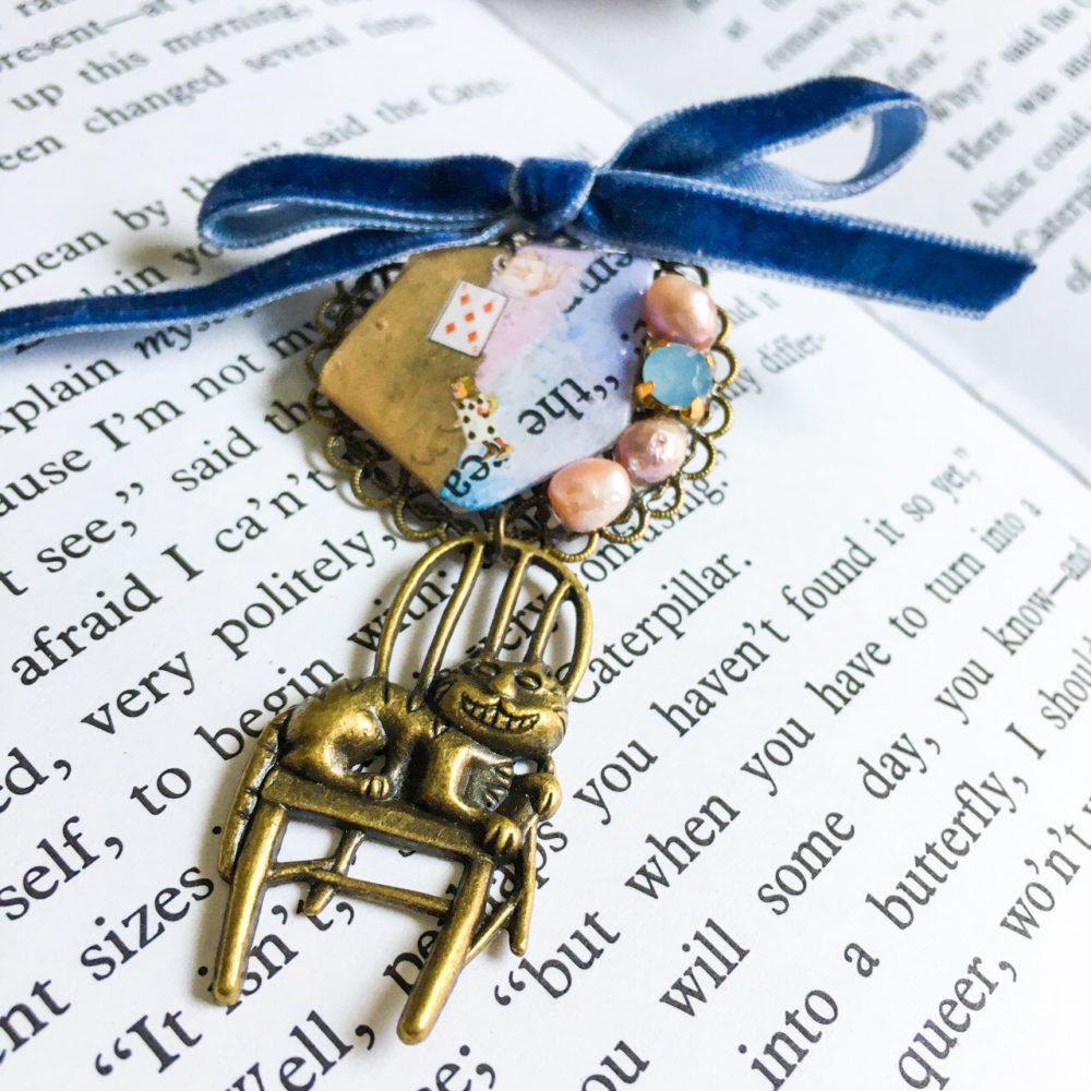 【7月新作】英国アリス・チェシャ猫と水彩コラージュのブローチ