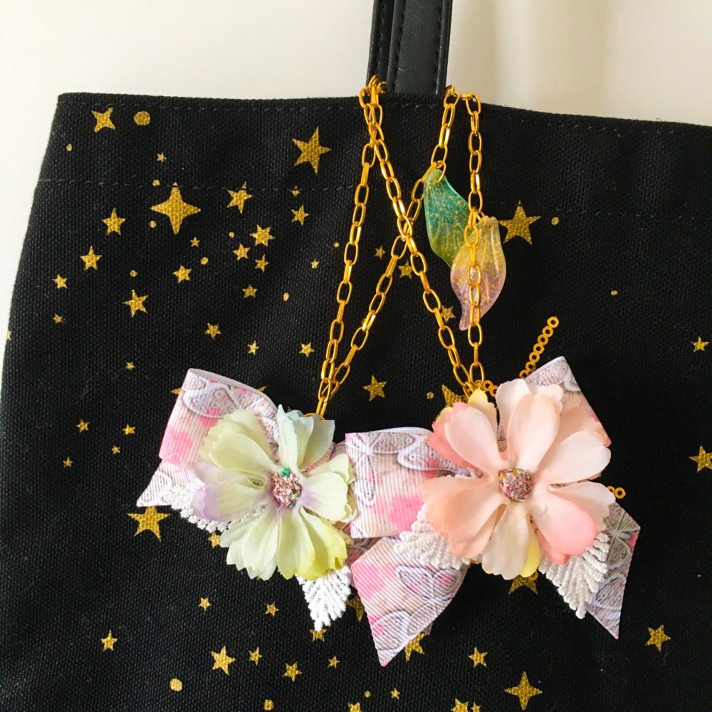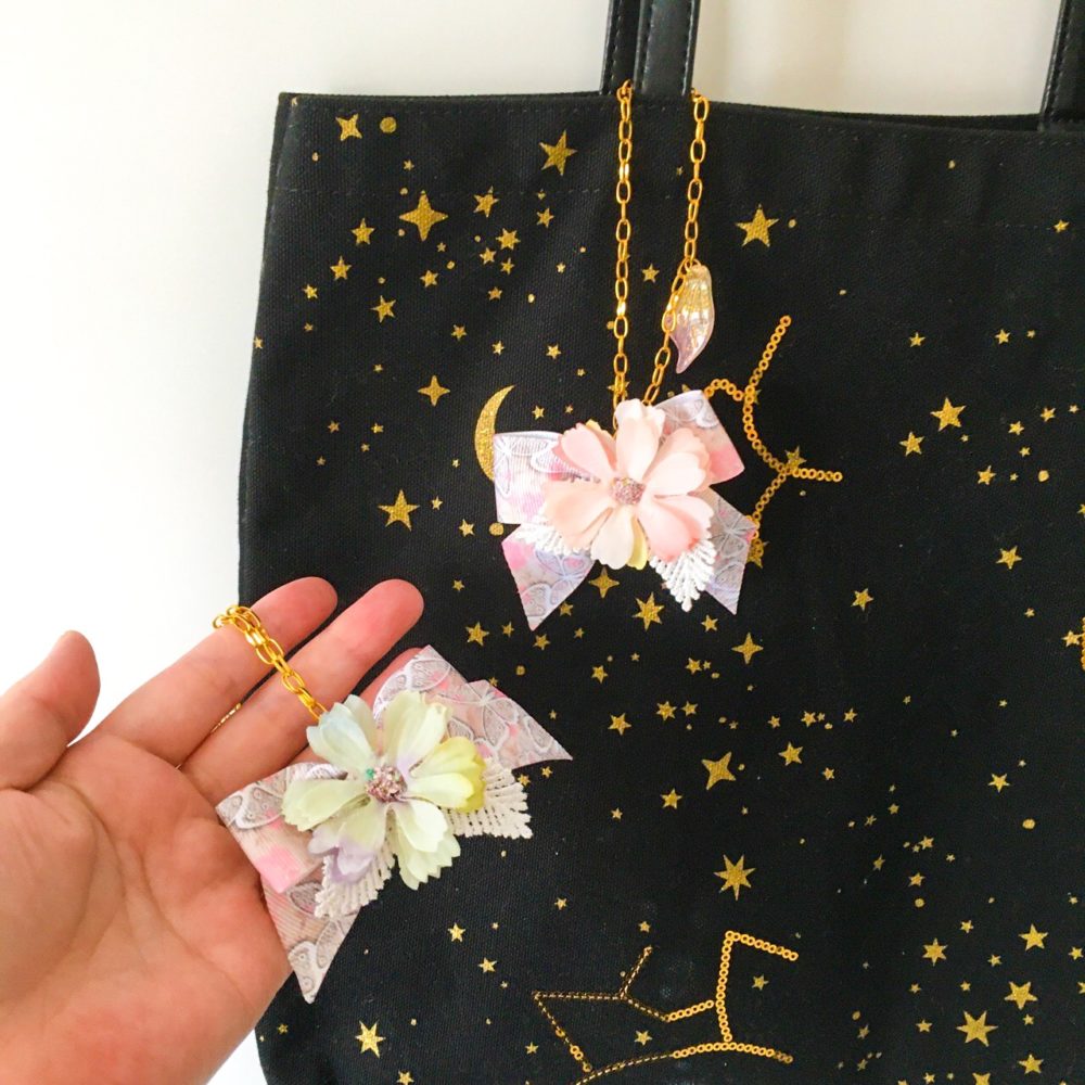 お花とリボンのバッグチャーム 2022-05-19 最終更新日時 : 2022-06-14 arie ガーリーなバッグチャームのご紹介です♪ お花はニュアンスカラーの優しげな雰囲気。 リボンは蝶々の柄です。 お花の色と合わせた葉っぱの形のグラデーションチェコビーズ。 グリーンとピンクの2色です。 Follow me !! @arieaobana FacebooktwitterHatenaPocketCopy
