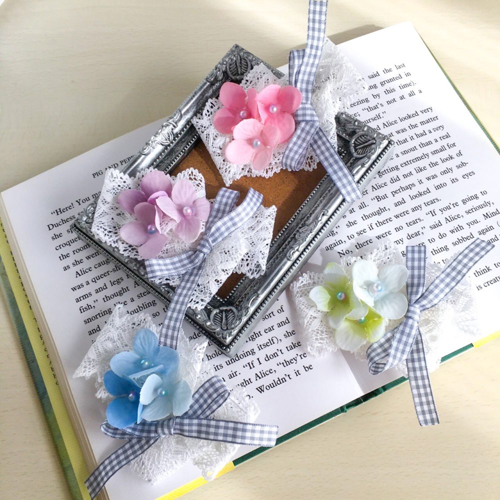 紫陽花とホワイトレースのクリップも爽やかです。