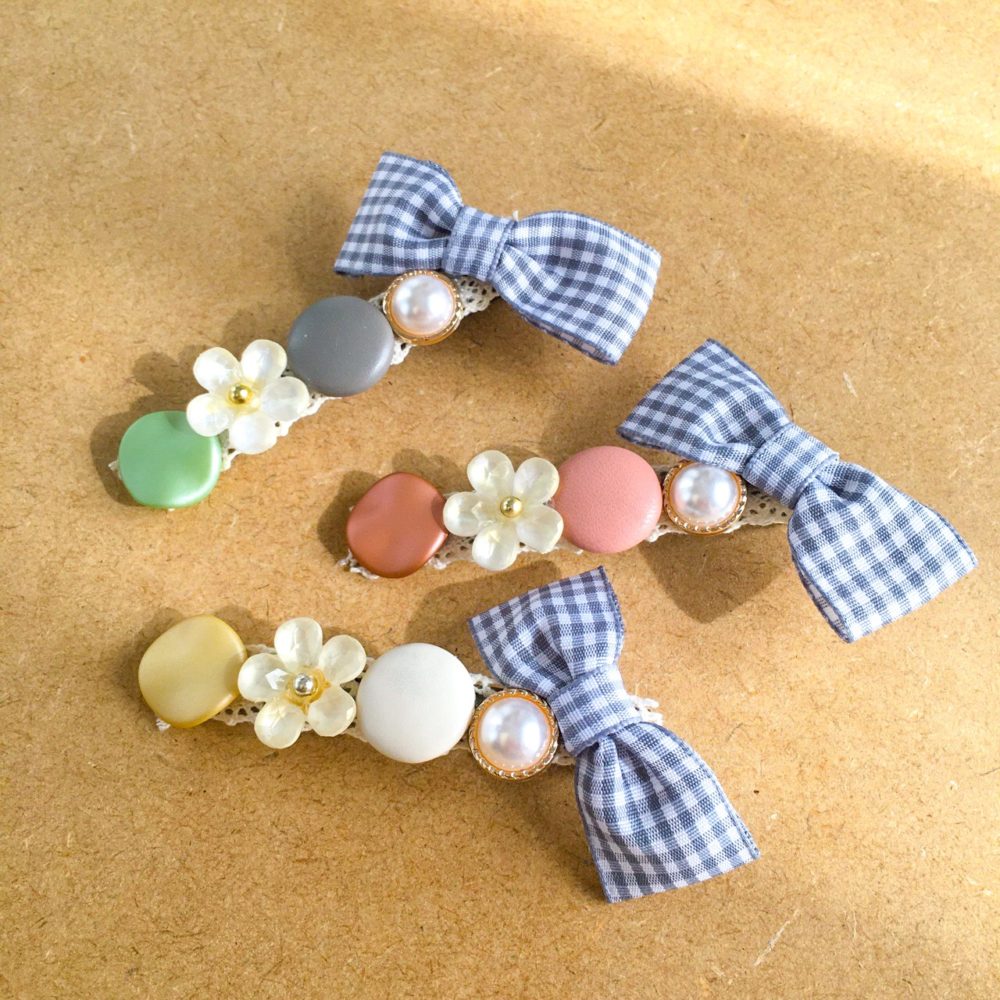 レトロボタンのクリップも春らしくお仕立てしました。