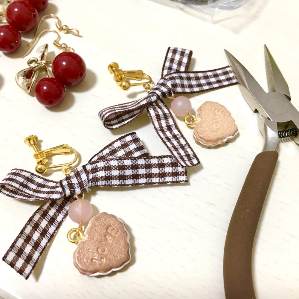 イベントに向けて、可愛いもの好きさんに刺さるようなアクセサリーを作りたいなあ、とコツコツと頑張ってます。