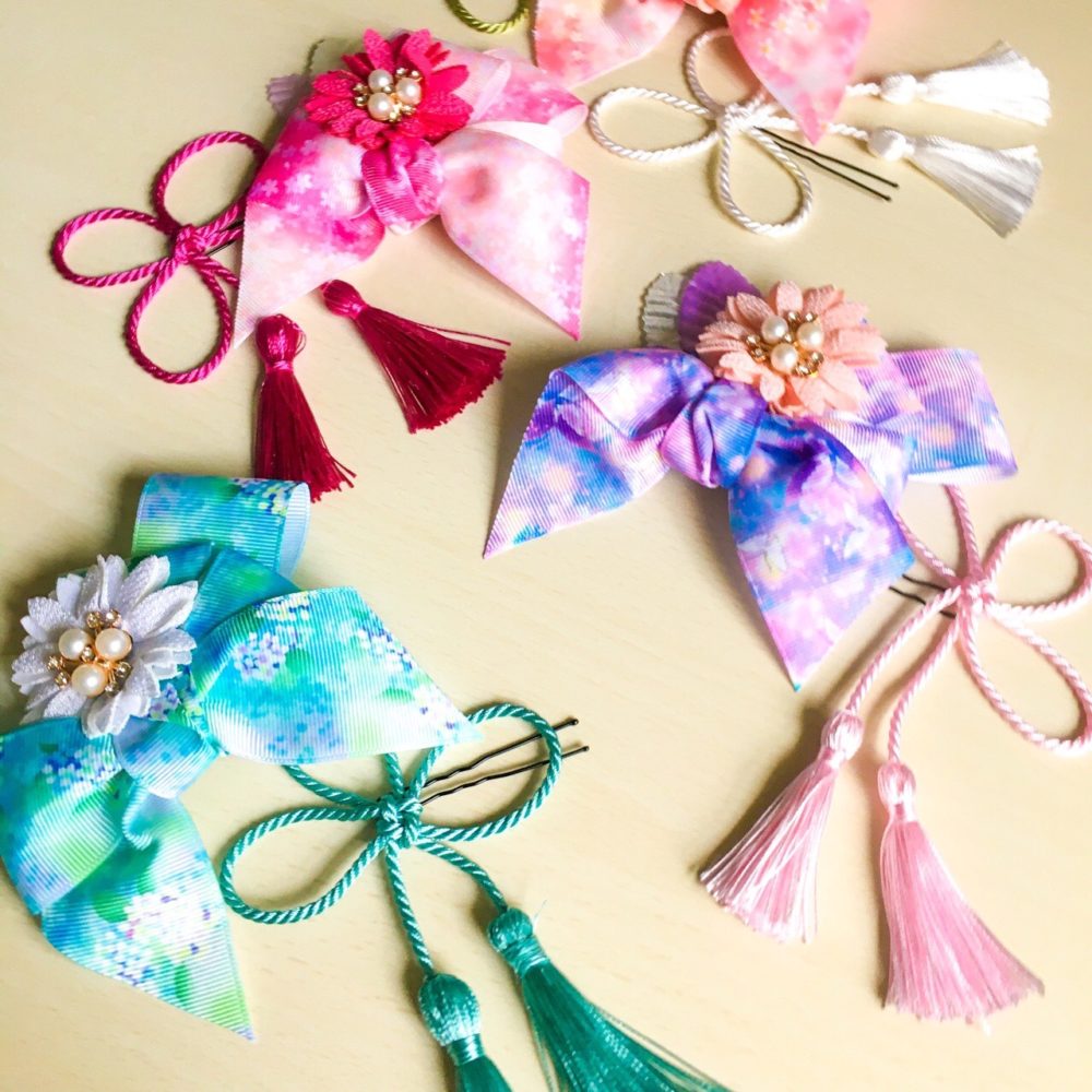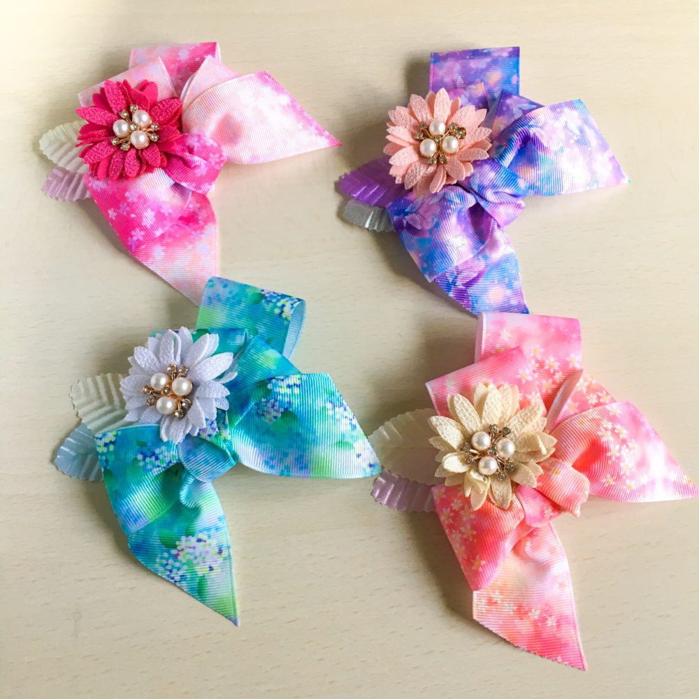 可愛い和柄のグラデーションが美しい、水彩風のグログランリボンを仕入れましたので、作ってみました!