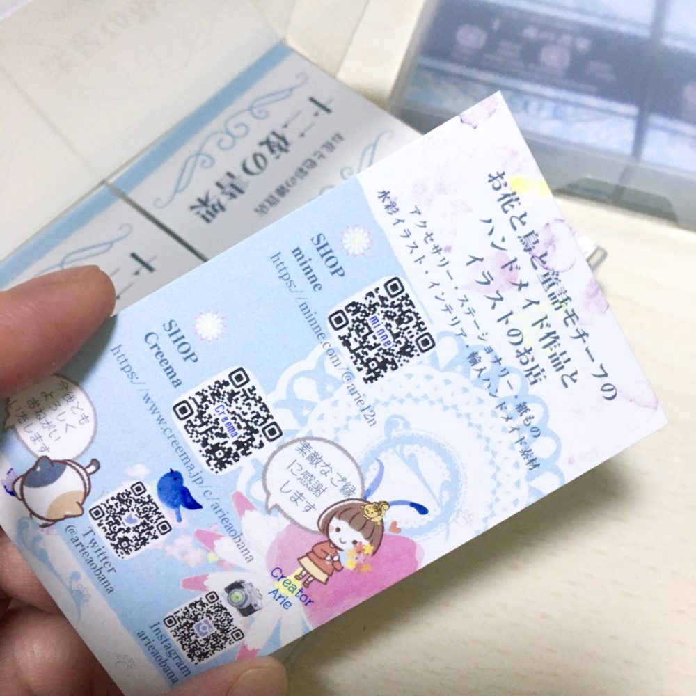 ショップカードにも、透明水彩で描いた紫陽花の花びら模様をほんのりと入れています。