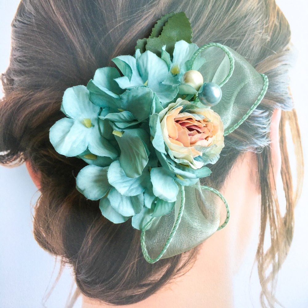 シースルー素材のオーガンジーリボンで、涼やかなコサージュクリップ。