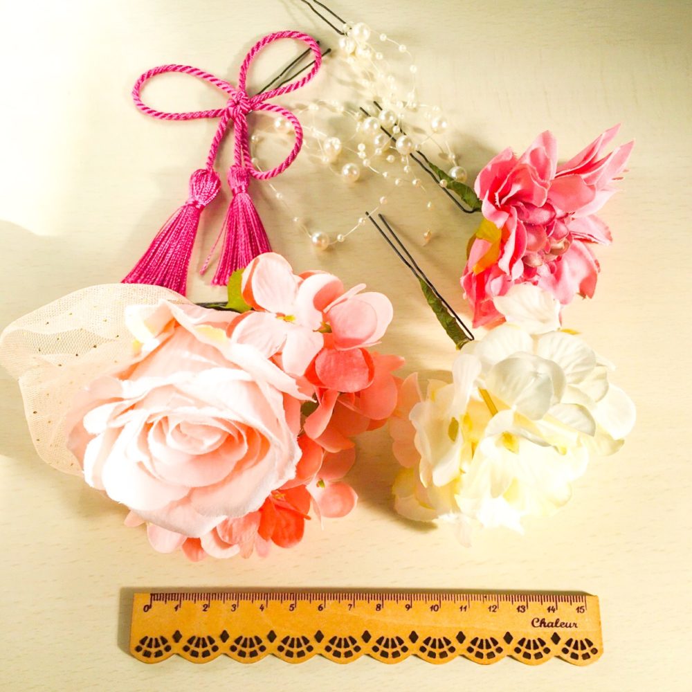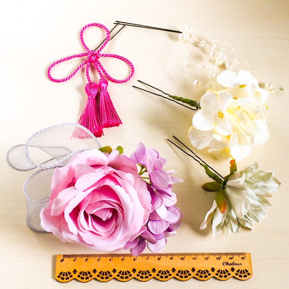 お着物にも似合い、一生に1回だけしか使えない髪飾りよりも、卒業式、結婚式、お友達やご家族、ご親族の披露宴に出席される時にも……と、10年はお使いいただけるよう、メインの薔薇はコサージュになるクリップブローチに。