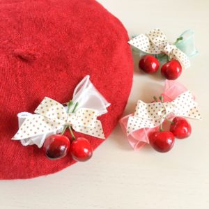 新作のレトロチェリーリボンクリップです。 リアルなさくらんぼと2種類のテイストの違うリボンでお仕立てしたクリップブローチ。甘くてワンポイントにぴったり。 小ぶりでも存在感はかなりあります♪ 可愛いさくらんぼ […]